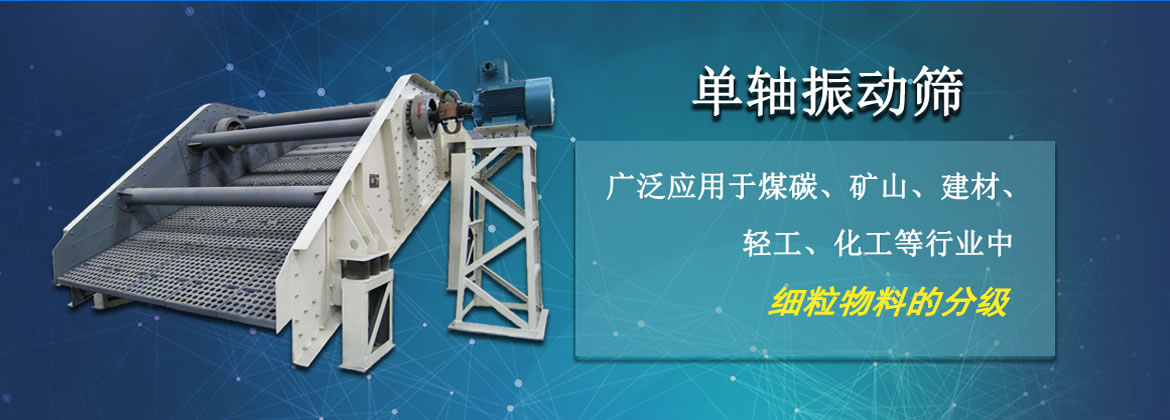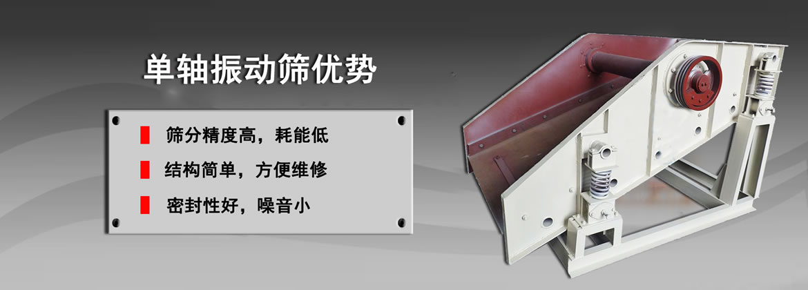 【产品介绍】:单轴振动筛层数有单层和双层,专门针对中细粒物料的分级,单轴筛运动轨迹 为圆,具有结构简单、维修方便、作业可靠的优点。
